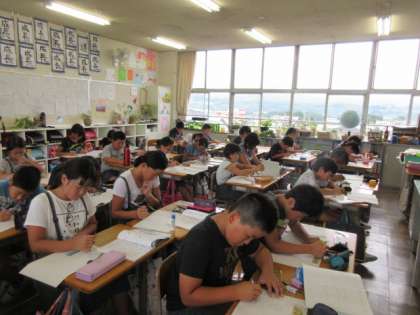 7月14日 金曜日 5A 体育 水泳 5B 算数 「合同」な図形