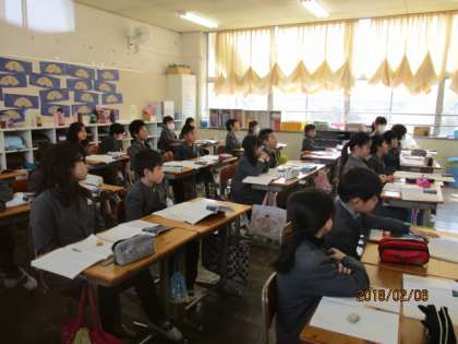2月6日 火曜日 3A 国語 モチモチの木 3B 国語 熟語のしりとり