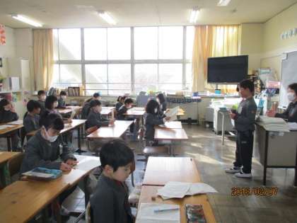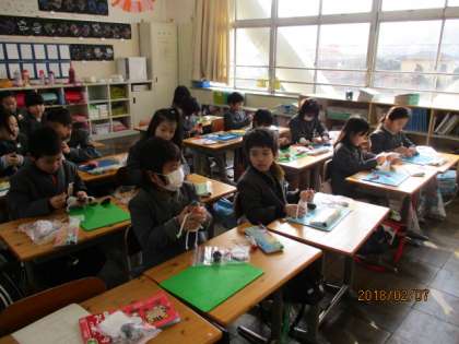 2月7日 水曜日 2A 国語 作文の発表 2B 図工 ゆらゆら人形