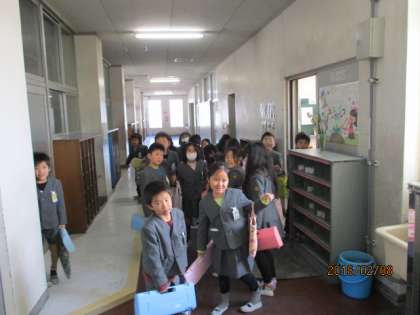 2B 音楽 終わって、みんなで並んで帰ります