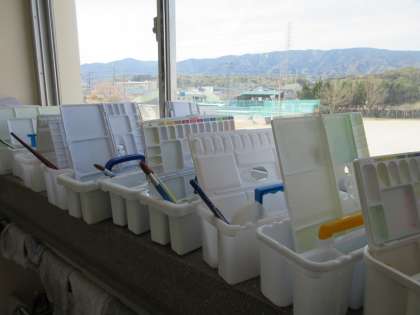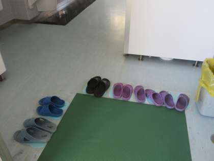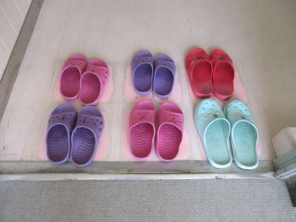 応其小学校では、態度教育として、挨拶、返事、履き物そろえ、ゴミ拾い、姿勢良く学習の5つを大切にしています。本日のトイレスリッパもきれいに整えられていました。洗ったあとのパレット類もきれいに整列されています。