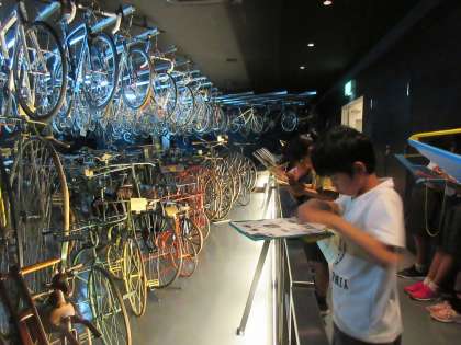 雨天のため、公園内の散策は取り止めに。そんな中、施設の方のご厚意で、急遽、自転車博物館サイクルセンターにお邪魔させていただきました。自転車が生まれた歴史についてのスライドを見たり、最古の自転車の模型を見学したりし、自転車のしくみを体験することも出来ました。ありがとうございました。