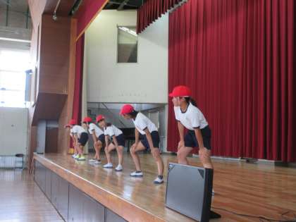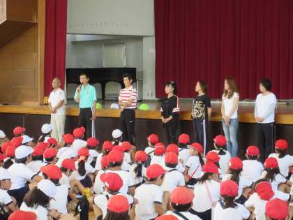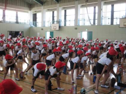 晴天のなか、本日午前中、地域のボランティアの皆様にもお世話になり、全校でスポーツテストを行いました。体育館で全体の会をしたあと、体育館と運動場に分かれて、各種目を行いました。