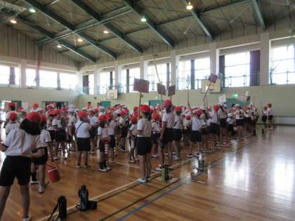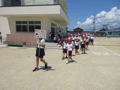 1年から6年までの縦割り班で、行動しています。6年生がきちんと下級生を誘導しています。さすが、高学年です。