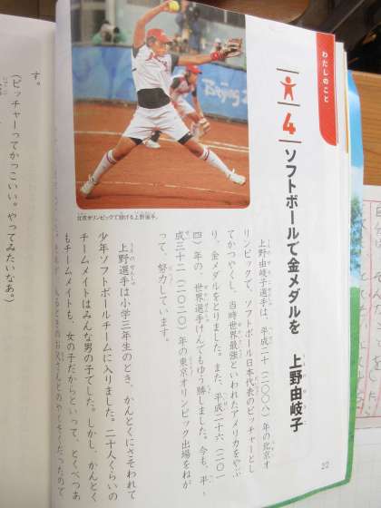 3年生の道徳の様子です。ソフトボールの上野選手を扱った資料で授業をしていました。