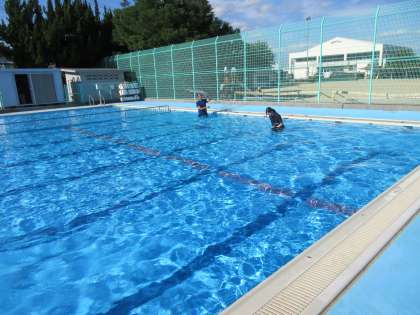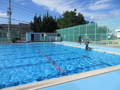 明日、プール開きをするにあたって、放課後、教員でプールの最終の掃除を行いました。少し水は冷たいですが、きれいないい状態となりました。