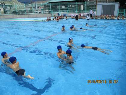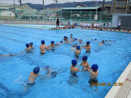 本日は今年初の水泳の授業を行いました。3年生からは大プールの方で授業を行うということで、水に慣れる活動を行いました。プールの水深が深くなり不安もありましたが、いざ入ってみると子ども達は楽しんで水泳授業に取り組んでいました。3年生としては水を怖がらず安定して伏し浮きが出来るようになること、面かぶりクロールが出来るようになることをを目標に頑張っていきます。