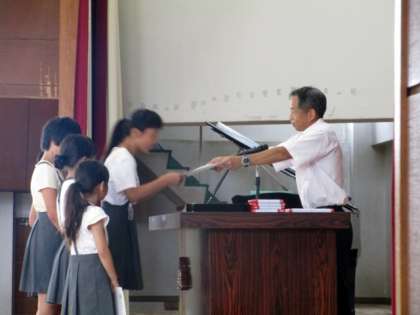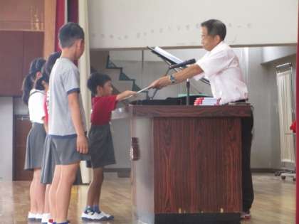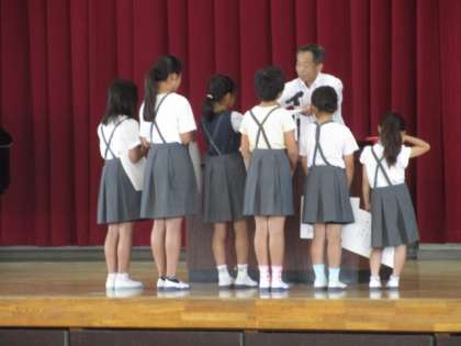 朝一番の集会で、よい歯を育てるコンクールに出場した6名と入賞の2名の表彰伝達を行いました。また、よい歯ポスタ−で入賞した児童の表彰伝達も併せて行われました。おめでとう。