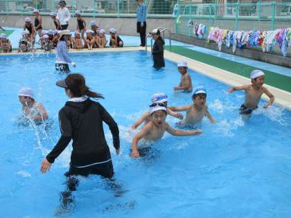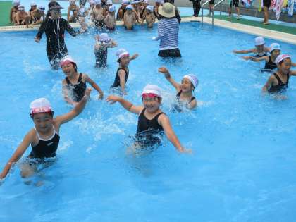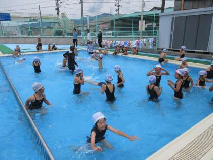 寒そうにしている児童が多いなか、楽しく水しぶきをあげながら水泳を楽しんでいました。