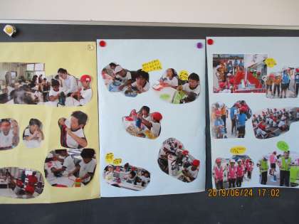 先週金曜日に行われたヨット体験についてのまとめを総合的な学習の時間に行いました。模造紙に写真を貼り一言コメントを付けたり、ヨット体験を新聞形式でまとめて書いたりしました。