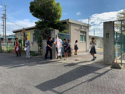 おはようございます。朝の挨拶運動実施中。 iPhoneから送信