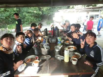 カレーライスの出来上がり! いただきます! どの班もうまくできました!