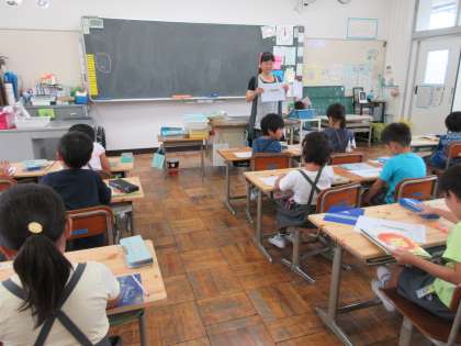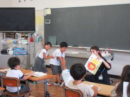 本日の授業の様子です。一年生「おおきなかぶ」を演じていました。