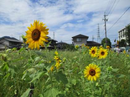 学校前の畑には、まだ沢山のひまわりが咲いています!