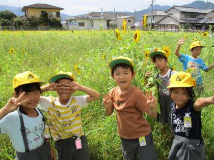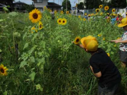 がいたり、自分の背の高さと比べ、「ひまわりの方が大きい!」と