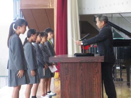 児童会役員任命 公開日 2019/10/15 更新日 2019/10/15 児童会 児童会後期役員任命を行いました。前期から後期役員に、木のバトンを受け渡し、引継ぎを行いました。自分たちで、いろいろな活動を積極的に行ってください。 いいね(0)