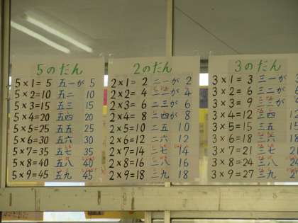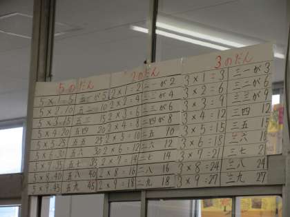 教室にも張り出されました。九九の表。しっかりと覚えてくださいね。