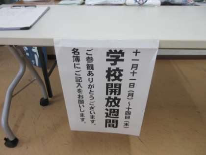 学校開放中です。自由に学校の様子をご覧ください。受付は、児童玄関前となっています。