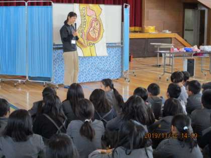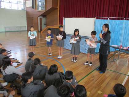 今日は保健師さんや母子保健推進委員の方々に来ていただき、いのちを育む授業を行いました。昨日は、奇跡的な確率で自分たちが誕生したことを知り、今日は、赤ちゃんが産まれるまでについて教えてもらいました。自分たちは生まれてきただけで周りの人を幸せにしていること、「生きているだけで100点満点」であることを学びました。お家の方にも参観していただき、親子でいのちについて考えるきっかけになったと思います。