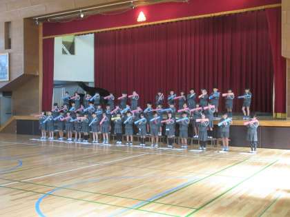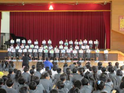 2年生の発表です。大きな声で歌いました。虫の絵もかわいかったです。