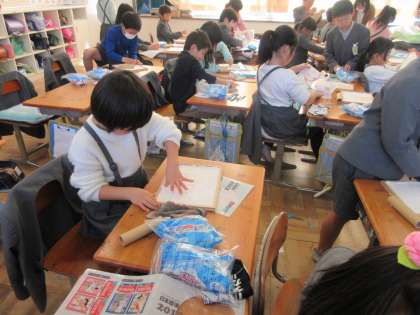 続きです。3年生はそろばん練習、2年生は、紙粘土を使った工作をしていました。みんな真剣です。