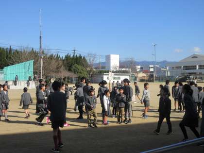 縦割りグループによる遊びが、たくさんありました。今日は天気もよく、校旗も雨引山をバックにきれいにはためいていました。まさに、校歌の歌詞「はためく校旗 つるかしわ」そのものです。