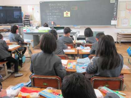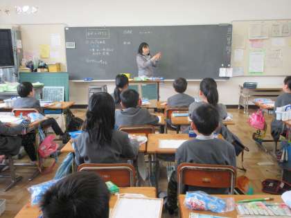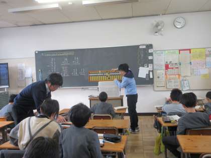 3年生はそろばん練習、2年生は図工で紙粘土に色をつけていました。