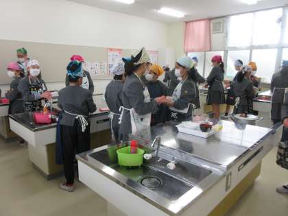 6年生の算数も割合を使った高度な学習になっています。5年生は、味噌汁つくりです。おいしく出来上がりました。