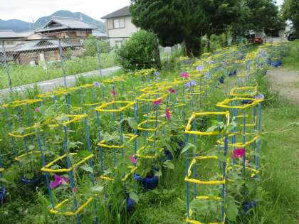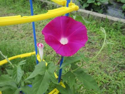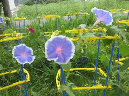 一年生が育てているあさがおが咲き始めました。色合いも綺麗です。
