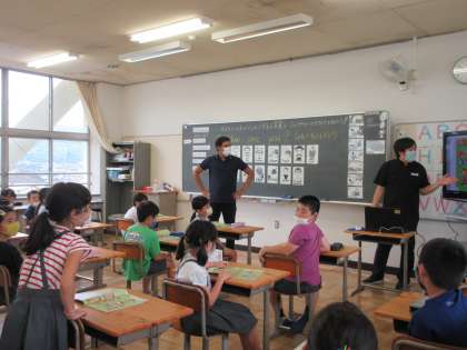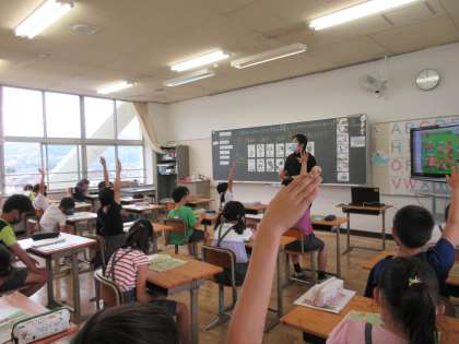 ALTとともに英語の授業です。ALTの先生が、事情により今回の訪問がラストになります。短い期間でしたが、どうもありがとうございました。