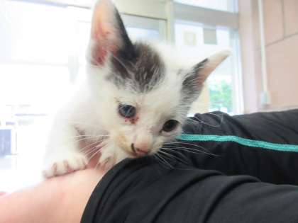 ねこの赤ちゃんが何匹か学校の近くで生まれたらしく、学校の倉庫の奥にも一匹いました。網にからまっていたので、救出してあげました。無事でよかったです。誰かもらってあげてください。オスのねこです。