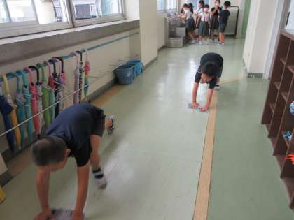 いつも、みんなで頑張っています。掃除終了後は、きちんと手洗いをします。