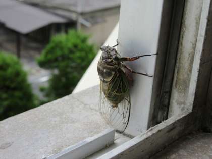 一匹のセミが窓でじっとしていましたので、捕まえて外に逃がしてあげました。充実したセミの一生を送ってください!