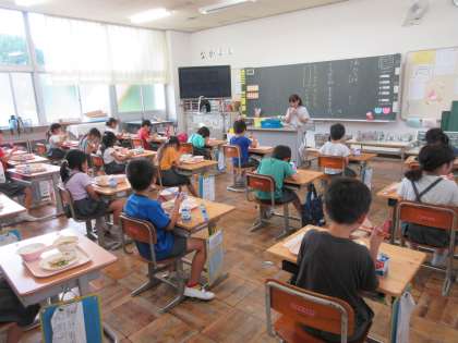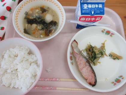 本日の給食です。好き嫌いなく、何でもたくさん食べてください。