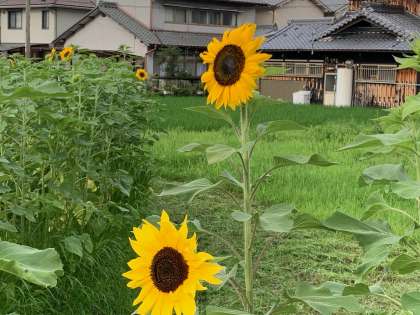 おはようございます。朝のひまわりの様子です。