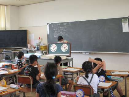 続きです。2年生体育ソフトボール投げ、3年生算数六十進法を使った計算方法の学習です。