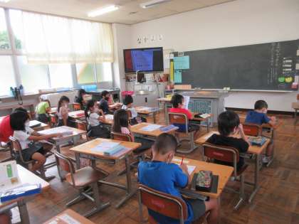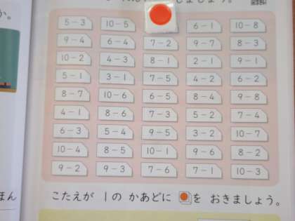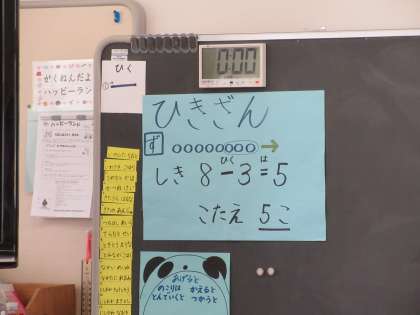 本日の授業の様子です。1年生の様子です。算数は引き算の学習をしています。