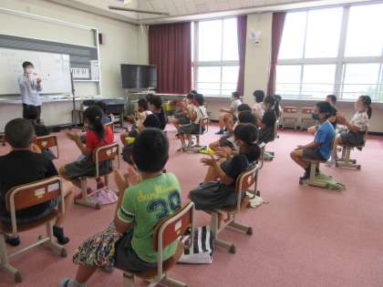 3年生の授業の様子です。音楽は楽譜に合わせて、手拍子をうっていました。