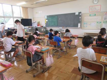 2年生、6年生の様子です。6年生は英語学習をしています。