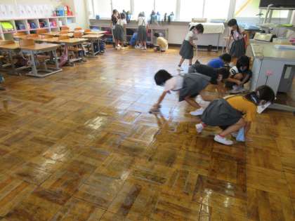 そうじの様子です。暑いけど、みんなよくがんばります。