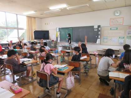 今日の授業の様子です。4年生はステンドグラス作成です。楽しみです。