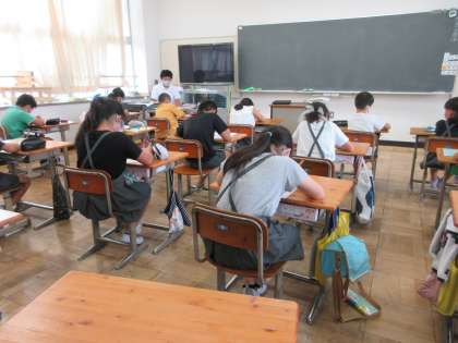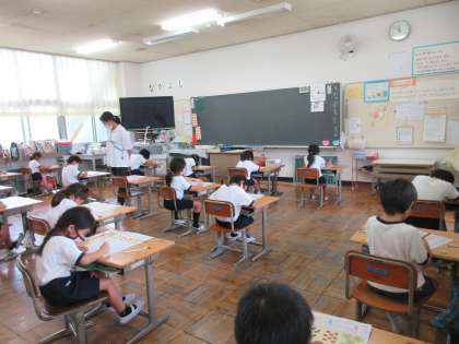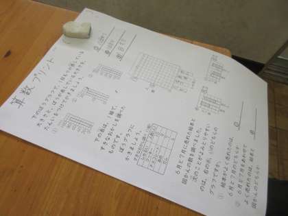 今日の授業の様子。1年生、3年生の様子です。3年生はグラフの算数プリントをしています。
