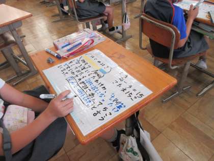 続きです。2年生算数。発表ボードがおもしろいです。どんどん自分の考えを発表してください。