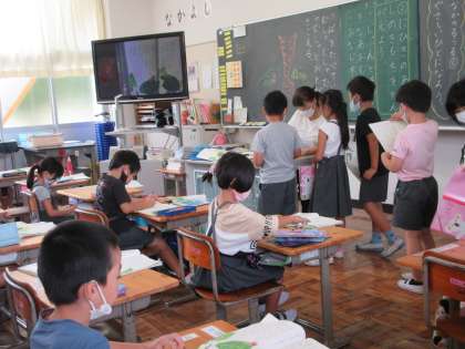 今日の授業の様子です。4年生理科、1年生の様子です。