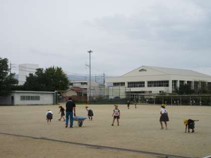 教員が何気なく石拾いをやっていると、自然に子どもたちが集まってきて、手伝ってくれます。とてもかわいい児童たちです。