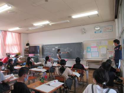 本日の授業風景 公開日 2020/09/23 更新日 2020/09/23 授業風景等 続きです。5年生、4年生の様子です。5年生算数では、二等辺三角形の性質を使った角度の求め方の学習をしていました。自分の言葉で説明できましたか? いいね(0)