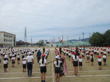 続きです。開会式、閉会式とも互いの間隔を開けたままでの式となります。