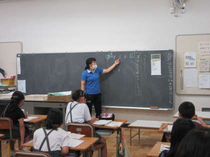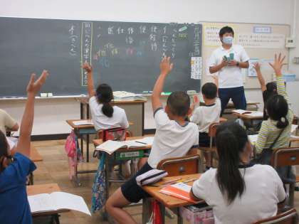 今日の授業の様子です。3年生はへんとつくりの学習です。英語ルームは今日はALT(英語の先生)が来てくれました。