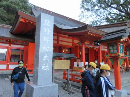 熊野那智大社。熊野本宮大社、熊野速玉大社とともに熊野三山の一社です。立派な建造物です。
