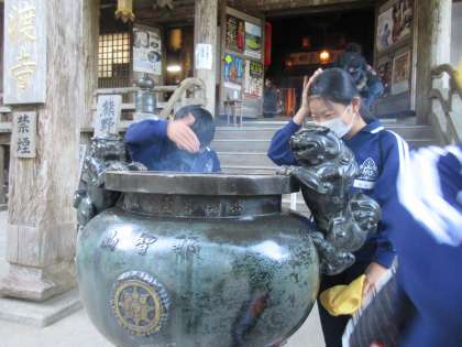 青岸渡寺。西国第一番札所としても有名です。この建物もりっぱです。寺ですが、狛犬がいました。
